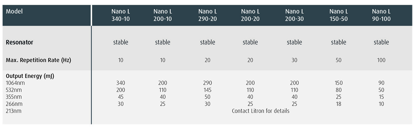The Nano L can be configured with either a stable or super-Gaussian coupled resonator. An intra-cavity aperture can also be fitted to give a true TEM00 output. The laser can be run at pulse repetition rates of up to 100Hz making it extremely useful in imaging applications and material processing applications alike.