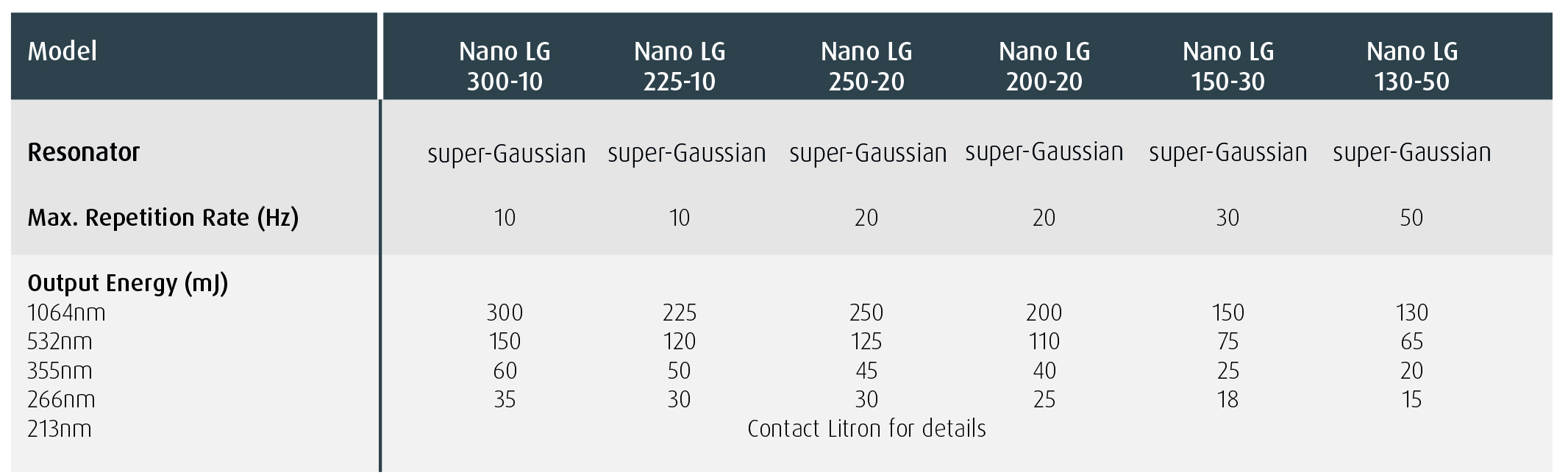 Output energies up to 340mJ 100Hz model with 90mJ output Electronically verified safety shutter 2nd, 3rd, 4th and 5th harmonics Monolithic laser resonator Rugged and stable