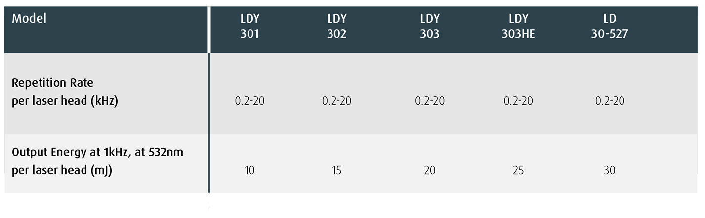 High Energy at 527nm Rugged industrial design Field replaceable pump module Dual cavity system 0.2-20kHz continuously variable
