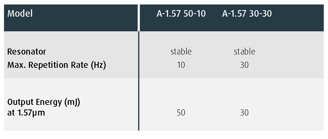 The Aurora-1.57 is a 1064nm pulsed Nd:YAG laser with a fixed wavelength OPO optimised for 1.57µm operation. The laser resonator and OPO are mounted on the same mechanical optical rail to ensure permanent alignment between the two components.